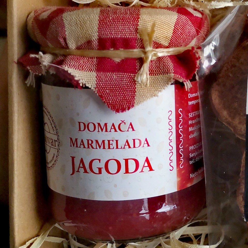 Domača marmelada iz naših neškropljenih jagod, pridelanih na lastni kmetiji. Navdušil vas bo prijeten, sladek jagodni okus ter omamen jagodni vonj.