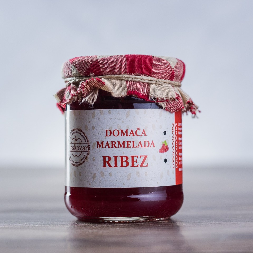 Domača marmelada iz rdečega ribeza, pridelanega na lastni kmetiji. Z letom 2024 smo vstopili v pridelavo ribeza. Marmelada ima pristen kiselkast okus, za vse tiste, ki ne marate preveč sladkih marmelad.